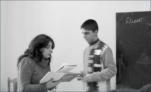 Администрация села и школа находятся в одном здании. Мы зашли в учительскую, где находились директор и одна учительница. Директор школы Шогер Григорян имеет 15-летний стаж преподавательской работы и три года является директором школы. Сама школа-четырёхлетка небольшая: одиннадцать учеников, пять преподавателей. После её окончания дети продолжают учёбу в соседнем селе Нахичеваник. В настоящее время восемь детей из Сарнахпюра учатся там. Президент Карабаха подарил селу машину, которая каждый день отвозит учеников из Сарнахпюра в Нахичеваникскую среднюю школу и привозит обратно домой. В этом году в первый класс поступил один ученик, в прошлом году первоклассников было четверо, в следующем – снова будет четверо учеников… Я сделал несколько снимков в школе и небольшой клип урока…