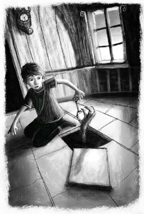 Под доской обнаружилась дыра. Линус посветил газовой лампой. Там, в темноте, что-то блеснуло. Ключ. Старый, потемневший, длиной с ладонь. Линус лег на живот, чтобы достать его. Ключ оказался тяжелее, чем он думал, но Линусу удалось его достать. Мальчик сидел и озадаченно рассматривал ключ, когда вдруг раздался какой-то скребущий звук. Линус прислушался и понял, что звук идет снизу. Все ближе и ближе. Внезапно из дыры что-то высунулось. Линус оцепенел.