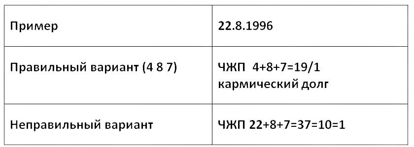 Некоторые нумерологи (их немного) делают расчет ЧЖП другим способом. Для этого они складывают подряд все числа, составляющие дату рождения. Все же я придерживаюсь именно того варианта, что вам дала. Данная методика не позволяет упустить управляющие числа и числа кармического долга.