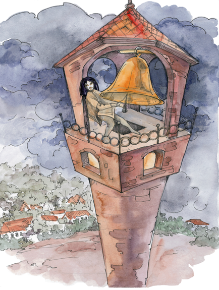 Дёрнув её несколько раз и убедившись, что она хорошо держится, Сандро быстро стал карабкаться вверх. Ещё немного и он оказался на колокольне. С высоты хорошо был виден весь город.