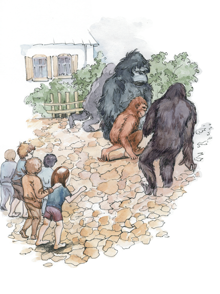 Сначала гориллы, заняв оборону, ещё пытались оказать сопротивление. Они рассчитывали на свою непомерную силу и злость. Но восставшие смело, презирая опасность, бросались на врага. Обезьяны сначала дрогнули, потом начали отступать и, наконец, обратились в паническое бегство.