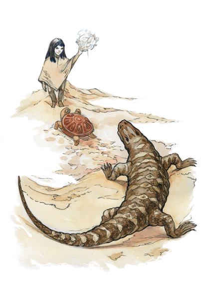 Он явно от кого-то спасался, но от кого? Песок на вершине бархана дрогнул и осел. На гребне горы показалась огромная уродливая голова животного очень похожего на крокодила.