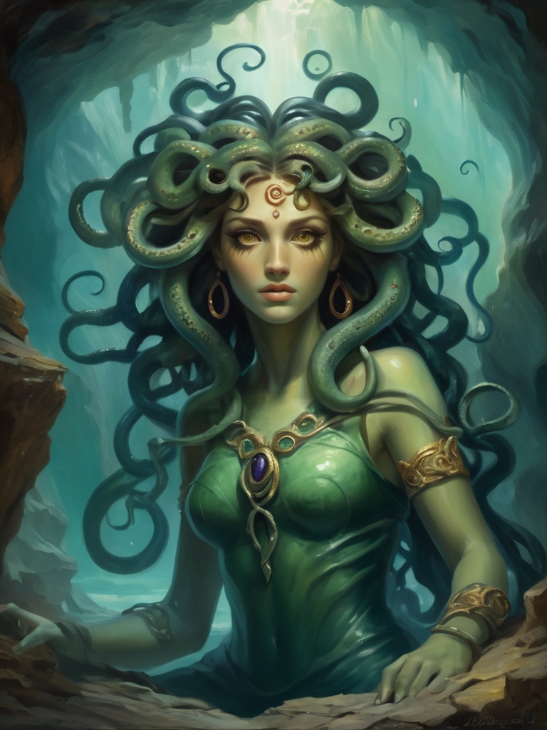 – Меня же прокляли, – усмехнулась Медуза. – Спасибо Посейдону и Афине. Но у этого проклятья есть обход… и вот он. Я на свету превращаюсь практически полностью в деву мирскую, обычную… только… эти чёртовы волосы меня выдают. Никакой магией я не обладала. А вот мои первые три дочери… от Посейдона… они – да. Именно они могут обращать людей в камень. Я пыталась их остановить… и смогла со всех нас частично снять проклятие.