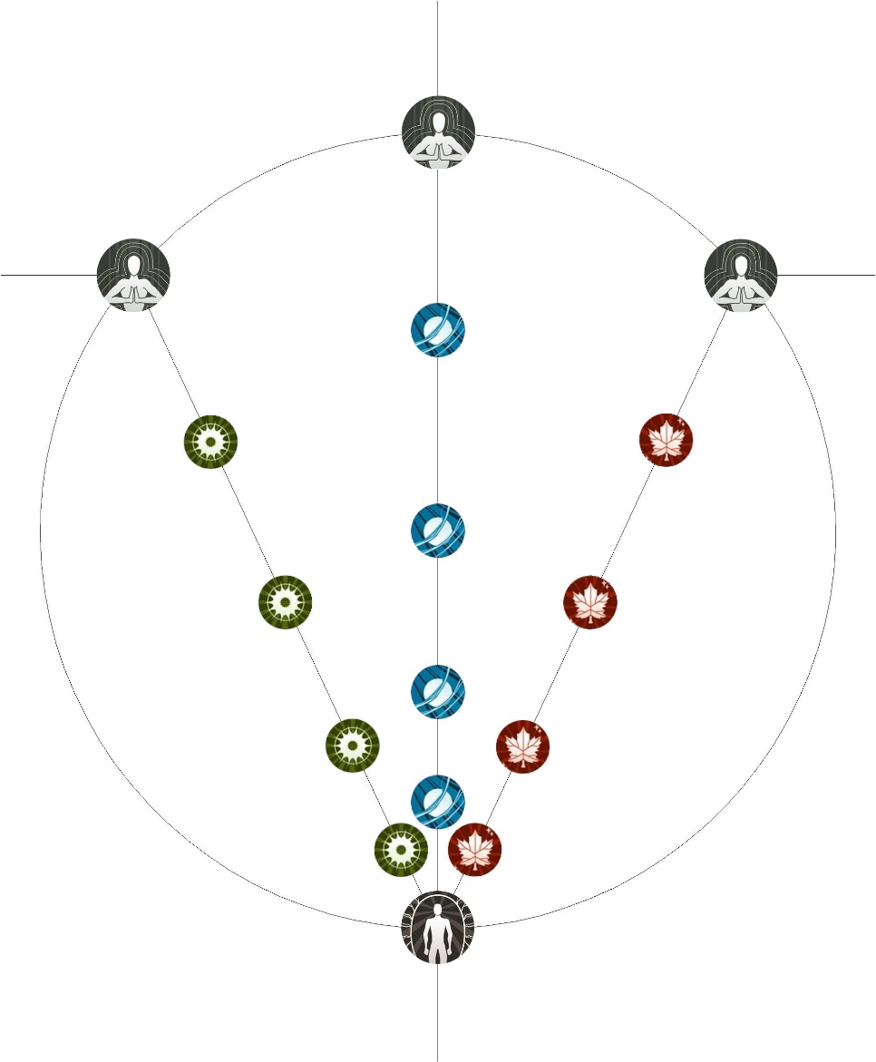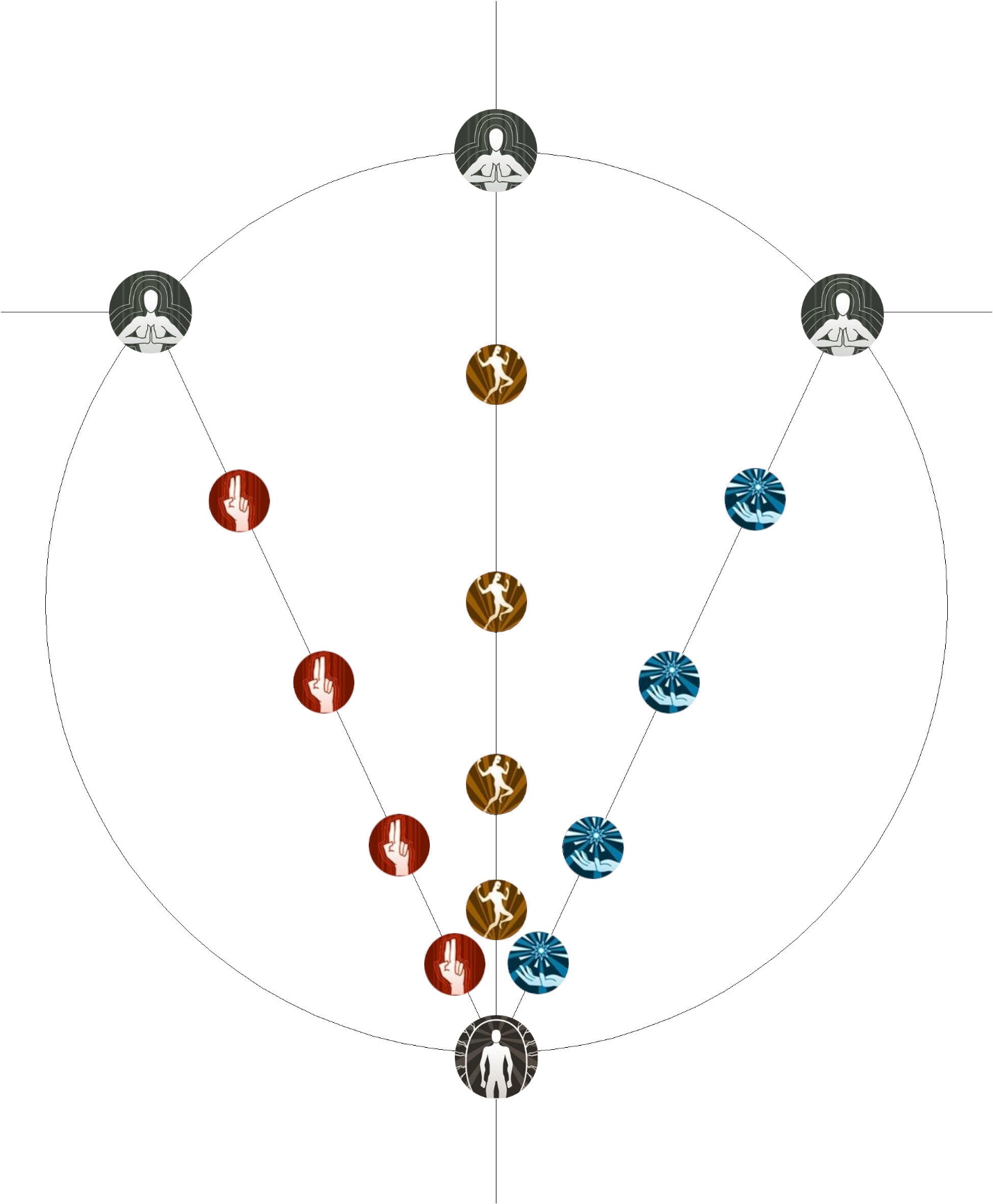 А что касательно закономерности… дополнительные ветви выбирались либо по часовой стрелке, либо против неё, но не в обе сразу. То есть в случае с древом физических способностей дополнительные навыки взялись против часовой стрелки, как и в случае со спиритическими способностями. А вот от восприятия дополнительные навыки взялись по часовой стрелке относительного основного древа навыков. Но это так, мелочи, на которые так сильно внимание заострять не стоит.