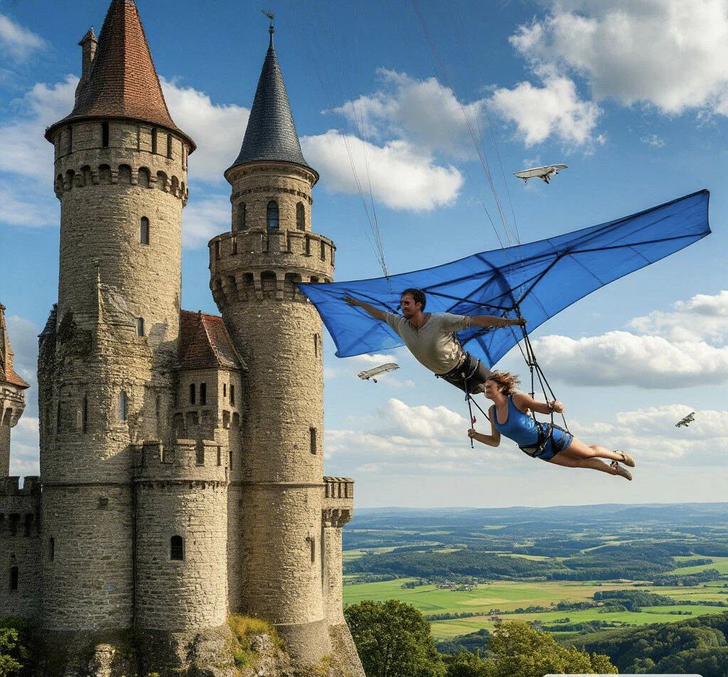 Я рассмеялся счастливым смехом, включил жёсткий диск. В папке " Наши Фильмы" нашёл " Сказку Странствий". В мерцании экрана плазменного телевизора зазвучала волшебная музыка Шнитке и Марта с Орландо отправились на поиски похищенного мальчика Мая. Диана смотрела не шевелясь, приоткрыв ротик и крутя в руках электронную сигарету, которой затягивалась время от времени. Кульминация фильма – побег философа Орландо и девочки Марты из Башни Смерти. Они летели на Синих Крыльях самодельного летательного аппарата (дельтаплана), пролетая над землёй под оглушительные раскаты музыки. Безумно красивая и трогательная сцена! Дианка растроганно всхлипывала и гладила мою руку. " Летим, Моя Девочка!" – кричал Орландо. " Летим, Мой Философ!" – восторженно вторила ему Марта. Мечта моего детства – Полёт на Синих Крыльях дельтаплана! Когда философ Орландо погиб от Чумы, Дианка уже не сдерживала слёз и по-детски утирала их кулачками, размазывая вместе с тушью по щекам. И вот финал. Орландо после смерти вселился в найденного брата Марты Мая. "Орландо, мой Философ, это ты?" – спрашивает Марта брата. " Да, моя девочка. " – отвечает ей Май. И финал. Май говорит, что видел во сне, как они летели с Мартой на Синих Крыльях, изобретенных бедным учёным философом Орландо и рисует схему Крыльев углем на скале под титры и божественную музыку Шнитке.