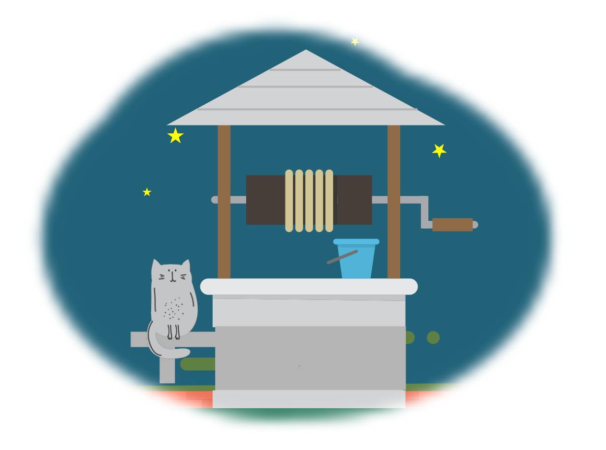 Когда я вернулся к колодцу, я опять услышал мяуканье. Было понятно, что Серянка в опасности, голос ее ослабевал. Я посветил фонариком внутрь колодца. То, что я увидел, очень напугало меня. Серянка наполовину была в воде и держалась двумя лапами за стенки колодца. Так как они были деревянными, она смогла уцепиться когтями. В ее глазах отразился луч моего фонарика, и она снова жалобно мяукнула. Я отошел от колодца. «Что же делать? – эта фраза крутилась у меня в голове. – Может, мне спуститься в колодец?» Но тут же отверг эту мысль, так как это было очень опасно и глупо. Я уселся на скамейку рядом с колодцем, раньше я на нее ставил ведра… «Точно! Нужно опустить ведро, она за него зацепится или даже залезет в него, и я ее вытяну!» – мне казалось, что это был гениальный план. И я решил тут же его осуществить. Я еще раз посветил в колодец и сказал Серянке, что я сейчас ее вытащу, а сам стал опускать ведро в колодец. Я все время приговаривал: «Серянка, милая, сейчас, сейчас!»
