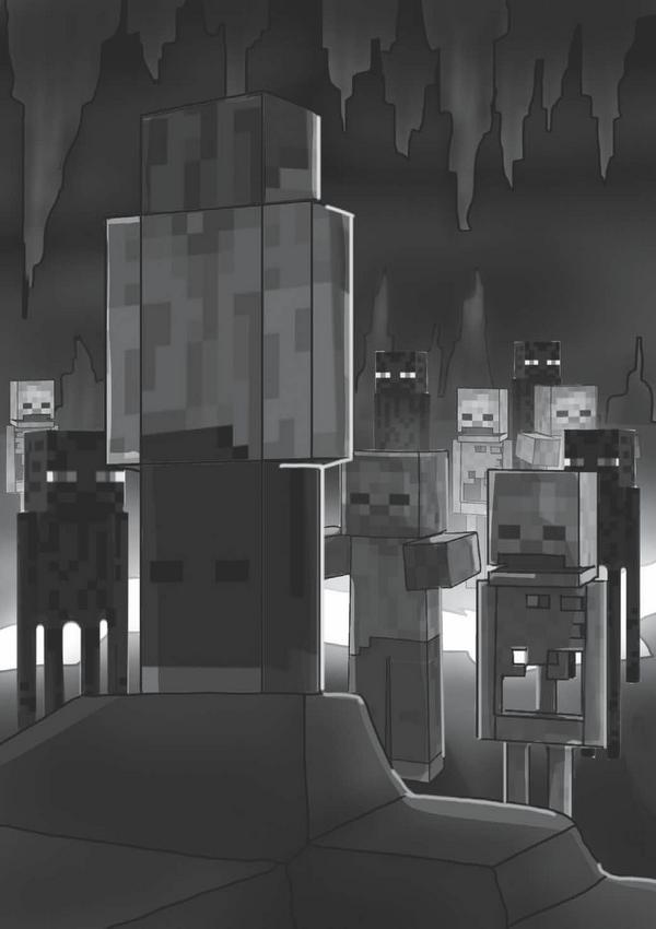 В дальнем углу на небольшом возвышении стоял каменный трон. На нём восседал завернувшийся в плащ Хиробрин и смотрел на окружавших его мобов. Несколько десятков скелетов, зомби и криперов сновали по пещере.