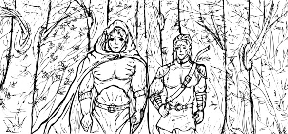 У Амшегара в руках был лук, за спиной стрелы, а на поясе нож. Вслед за ним шёл его брат, Редгар. Он был ростом чуть выше брата, тёмнорусые волосы и на пару лет старше. За спиной виднелись два меча. Братья вышли из дома и подошли к отцу.