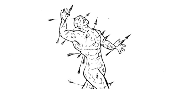 И в этот момент около пятнадцати стрел вонзились в Кельда со спины, пронзив его насквозь.