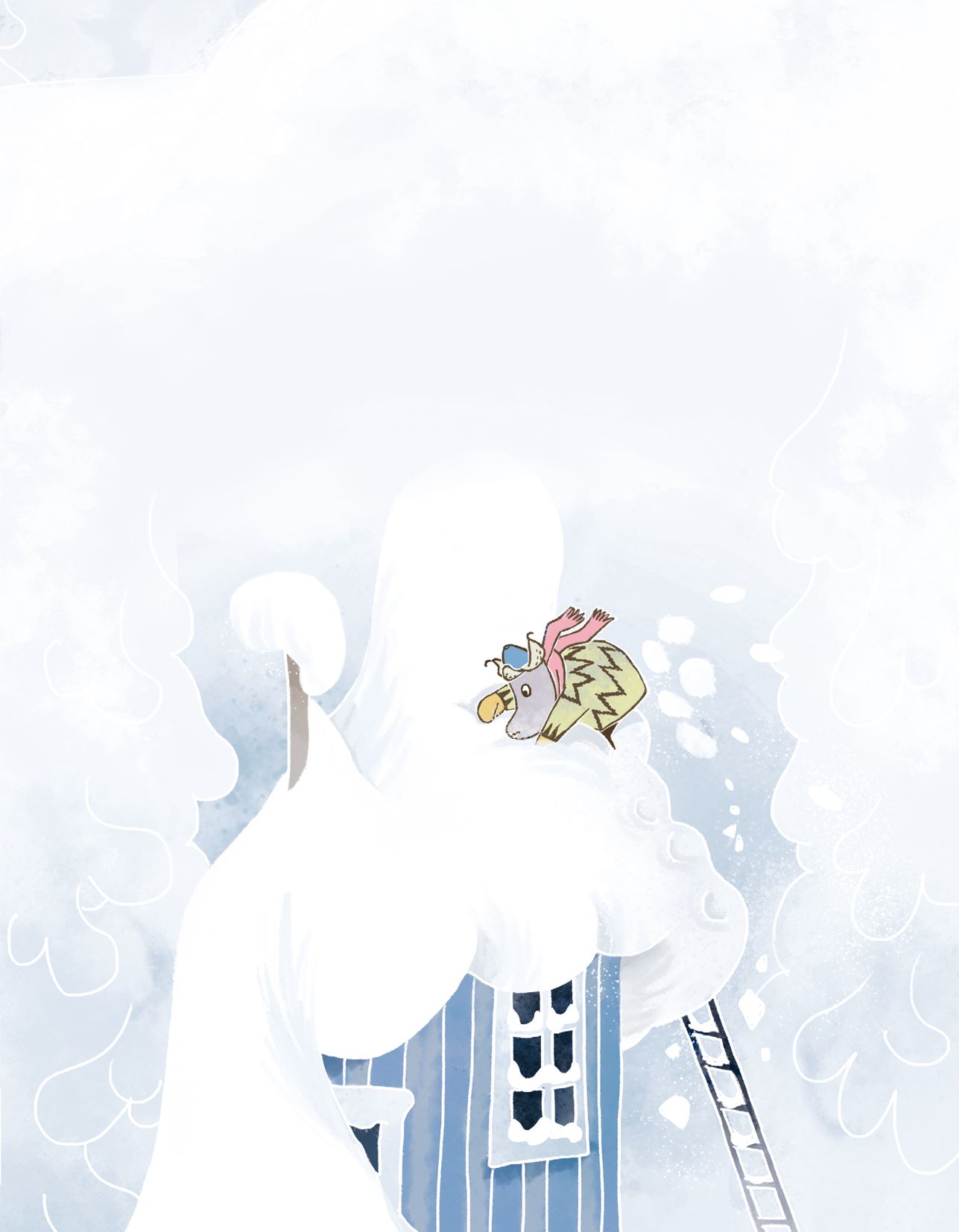 Хемуль падает на груду всякой всячины, которую муми-тролли стащили на чердак – до лучших времён или до весны.