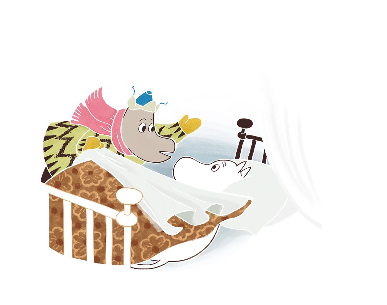 – О чём ты? – спрашивает Муми-мама, высовывая нос из-под одеяла.