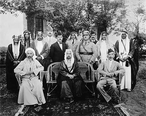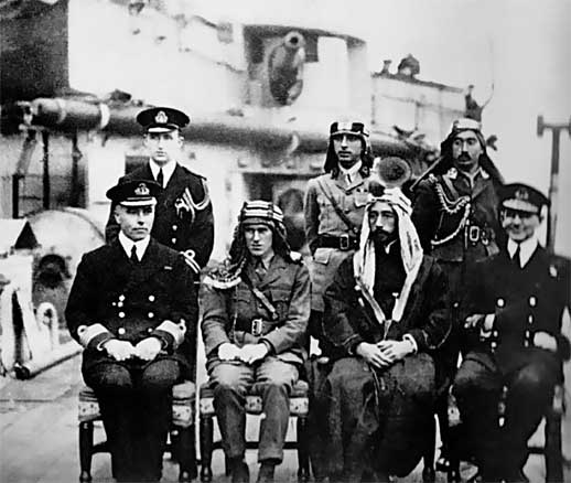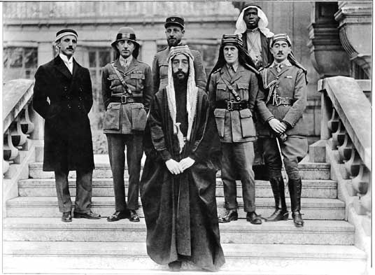 Фейсал аль-Хашими на Версальской конференции, 1919 год. Справа от Фейсала стоит Томас Эдвард Лоуренс (Лоуренс Аравийский)