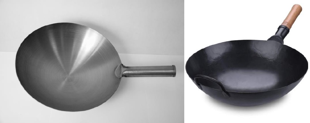 Вок из углеродистой стали (слева) и чугунный (справа)