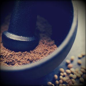 Я рекомендую использовать только цельные специи. Перед помолом, в большинстве случаев, следует немного подогреть семена или зерна специй. В этом случае выделяются эфирные масла, что значительно способствует усилению вкуса и аромата.