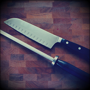 Нож для нарезания свежих ингредиентов должен быть всегда хорошо заточен. Я рекомендую для таких целей иметь два ножа: один небольшой, которым вы сможете без труда очистить имбирь, чеснок и лук, и широкий качественный шеф-нож, который поможет вам быстро нарезать свежие ингредиенты и нашинковать травы. Не лишним будет приобрести и мусат, который в любой момент позаботится об остроте вашего ножа. Доска незаменима для всех действий и манипуляций с ножом.