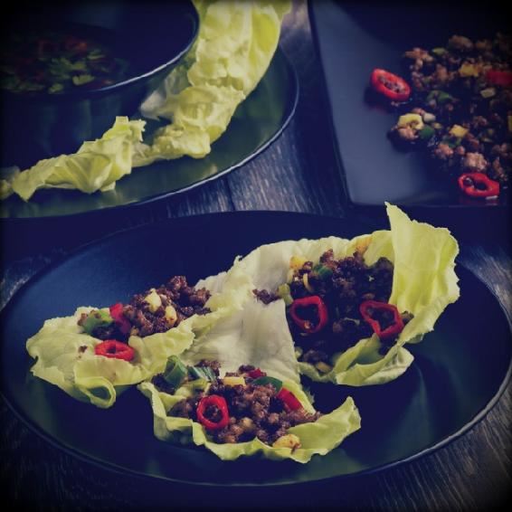 Ниже я познакомлю вас с двумя простейшими, но ароматными и вкусными закусками с нотками азиатского колорита. Первая закуска представляет собой обжаренные кусочки утки, заправленные китайской смесью пяти специй и соусом хойсин, а вторая – смесь говяжьего и свиного фарша, приправленного чили и другими пряными компонентами. Обе закуски подаются в листьях салата вместе с азиатскими соусами, что дает возможность каждому гостю выбрать себе соус по вкусу. Отличный вариант для небольшой вечеринки в азиатском стиле.