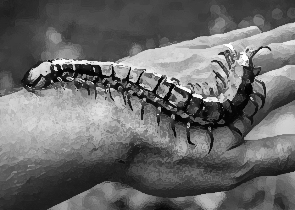 Охранник залетел в палатку, посмотрел, куда все уставились, направил туда автомат. Увидел убегающую сколопендру, расслабился, улыбнулся и расплющил её прикладом. Артем всё еще подпрыгивал и махал руками.