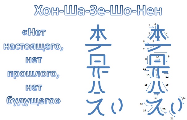 Один из переводов этого символа звучит как «Нет настоящего, нет прошлого, нет будущего». Некоторые называют этот символ «Пагода». Хон-Ша-Зе-Шо-Нен исцеляет прошлое, настоящее и будущее. Осуществляет кармическое исцеление. Исцеляет на расстоянии. Этот символ нужен для того, чтобы простроить канал либо во времени, либо в пространстве, либо и там и там. Написание этого символа самое сложное из всех.