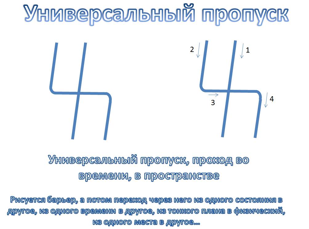 А этот символ пришел совсем недавно еще одному Мастеру Рейки, и я с удовольствием им делюсь. Называется новый символ «Универсальный пропуск». При его написании сначала рисуется вертикальная наклонная черта, которая символизирует грань между тонким и плотным миром, между прошлым и будущим, между здесь и другим местом.