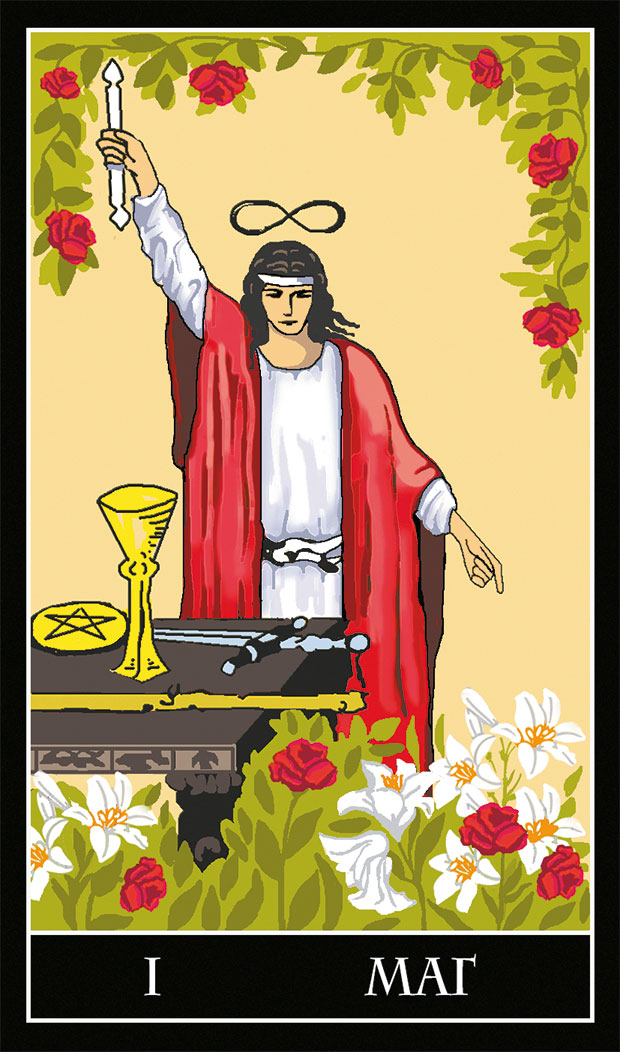 Лемниската над головой Мага – знак Святого Духа, знак Жизни, ее цикличности и бесконечности.