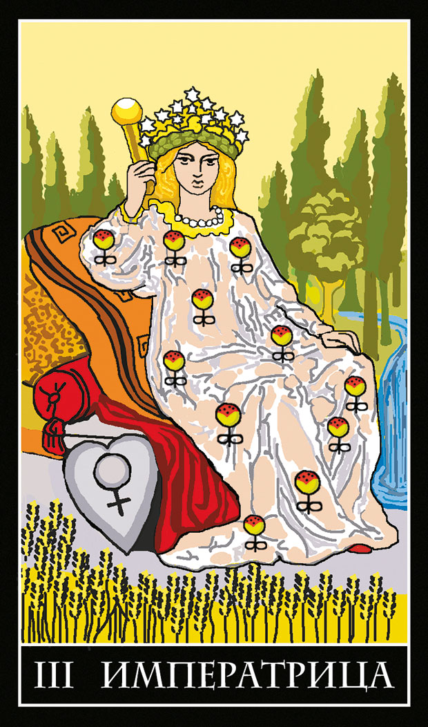 Статичная поза и мягкие подушки олицетворяют пассивную роль. Императрица не пытается взять на себя мужские функции, она управляет мягко. Она любит и ценит материальный мир, умеет создавать вокруг себя красоту. И вместе с тем она практичная и разумная хозяйка.