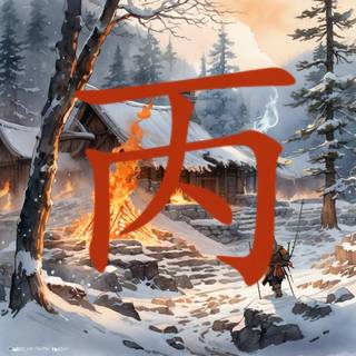 丙 янский Огонь яростно оскорбляющий иней и мороз, способен оскорбить снег; Он обжигает 庚 металл, следуя за 辛 иньским Металлом переворачивается трусливым и малодушным; При множественной Земля рождает доброту, любовь и милосердие. На Воде же показывает безрассудство, бешенство и неистовость. Тигр, Лошадь, Собака родная земля, с 甲 приходит, чтобы удачно завершится.