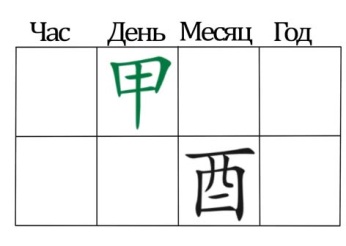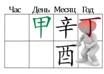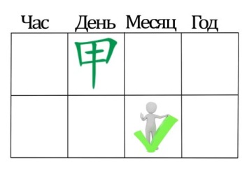 Так к примеру, янское Дерево либо иньское Дерево (甲乙), если в столпе дня карты стоит 甲 или 乙,то они относятся к стихии Дерева, 甲 относится к янскому, 乙 к иньскому.