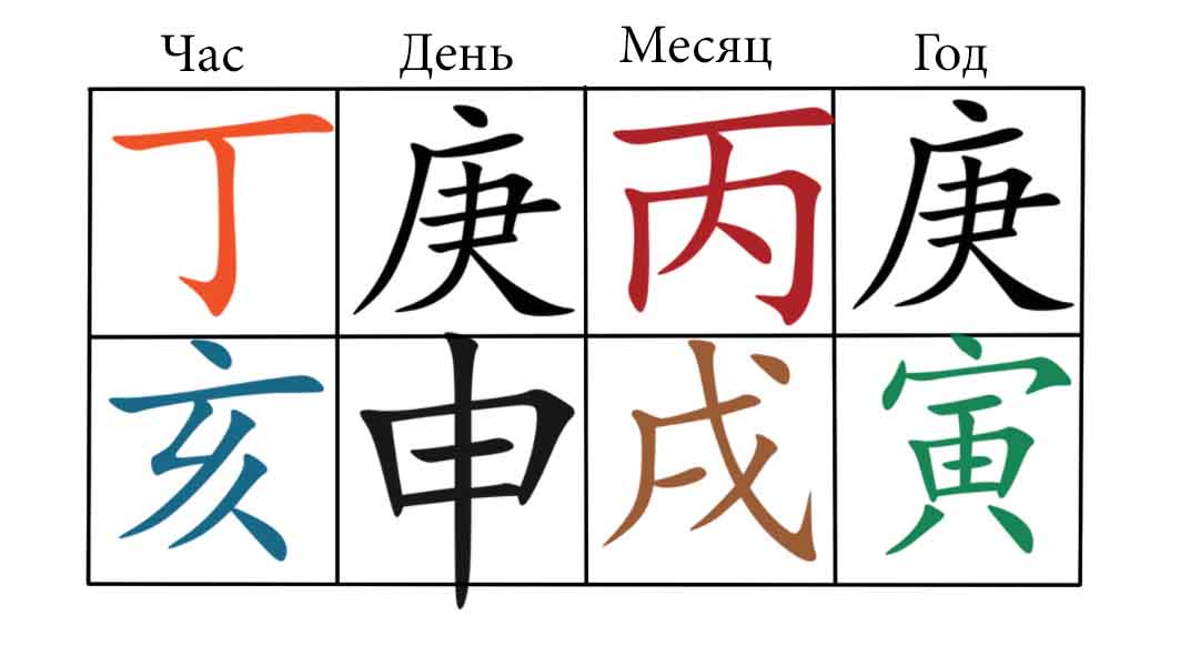 ДД иньское Дерево с помощью янского Металла 庚 получает мужа. Сам янский Металл 庚 Служебного благополучия достигает в ветви Обезьяны (Шэнь) 申.