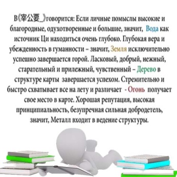 Опять же пять элементов стихий получают землю и утраченные территории (поддерживающую Ци), или получают чрезмерно много вреда, тогда дарования и способности оборачиваются бедой. Речь идет о чрезмерности, когда либо слишком мало, либо слишком много элемента стихии в карте. И то и то плохо для личности и черт характера.