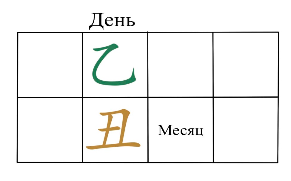 Несмотря на то что Дерево рождается в месяц Хай (Свиньи) 亥, испускает в ней Ци, в месяц Чоу (Быка) 丑, Ци Дерева приходит в упадок, получая фазу Старения (её также называют фазой Слабости, Увядания). Внутри ветви Чоу (Быка) 丑 есть иньский Металл Синь 辛, 丑 внутри не только холодная и мокрая Земля, иньский металл подрезает также корни иньского Дерева. И в старинных книгах говорится, что иметь в бацзы фальшивую и мокрую землю – это всё равно, что ехать на перепуганной, тревожной лошади. Поэтому однозначно можно сказать: мужчины, в чьих гороскопах ДД столп дня 乙丑, берут в жёны женщин, у которых не самый лучший характер. Они не только не получают от них какой-либо поддержки, ласки или нежности, но более того – они получают контроль от жены.