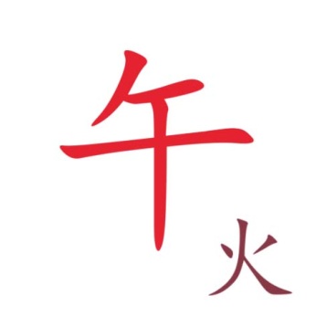 午 – середина лета, самый жаркий месяц, глава Огня. Огонь на сигнальной вышке, Солнце, жар вокруг. Но внутри него рождается только Иньская Ци. По цвету он алый и желтый. Проживает на Юге. Внутри себя в СНС содержит Небесные стволы: 丁, 己.