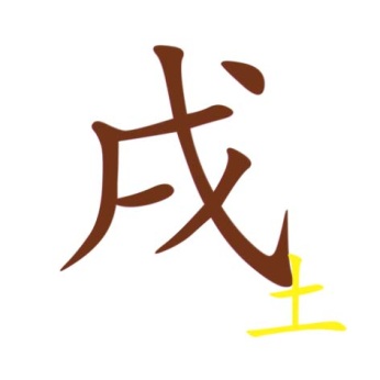 戌 – является плавильной печью и хранилищем Огня, грубый железный Металл зависит от выплавки. Это время, когда осенние травы и деревья увядают, а на полях жгут траву, после чего их вспахивают. Образ «обгоревшей равнины».