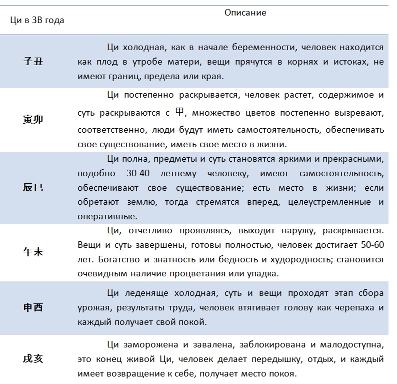 Вслед за описанием образа Ци, в столпе года смотрят свойства и характеристики Ци по пяти элементам стихий.