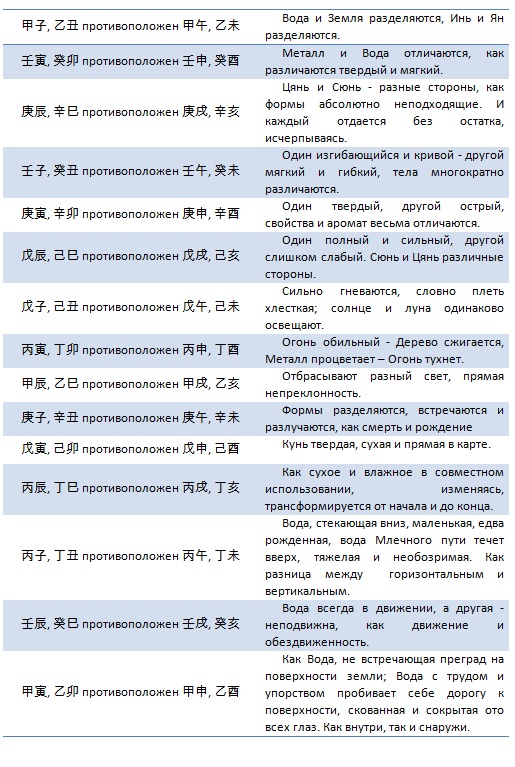 Важно знать: Эти пары столпов никогда не бывают совместимы, столкновения между ними подобно схватке между жизнью и смертью, являют собой в реальности и в карте разные формы звучания.