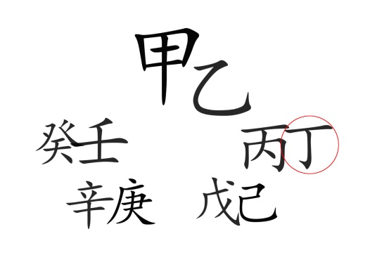 丁 – сердце,戊 – желудок,己 – селезенка,庚 – кишечник и толстая кишка,
