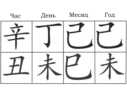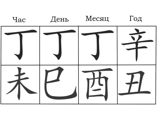 丁 己 乙 辛 Дин, Джи, И, Синь – у ДД много счастья, удача в карьере и почет.
