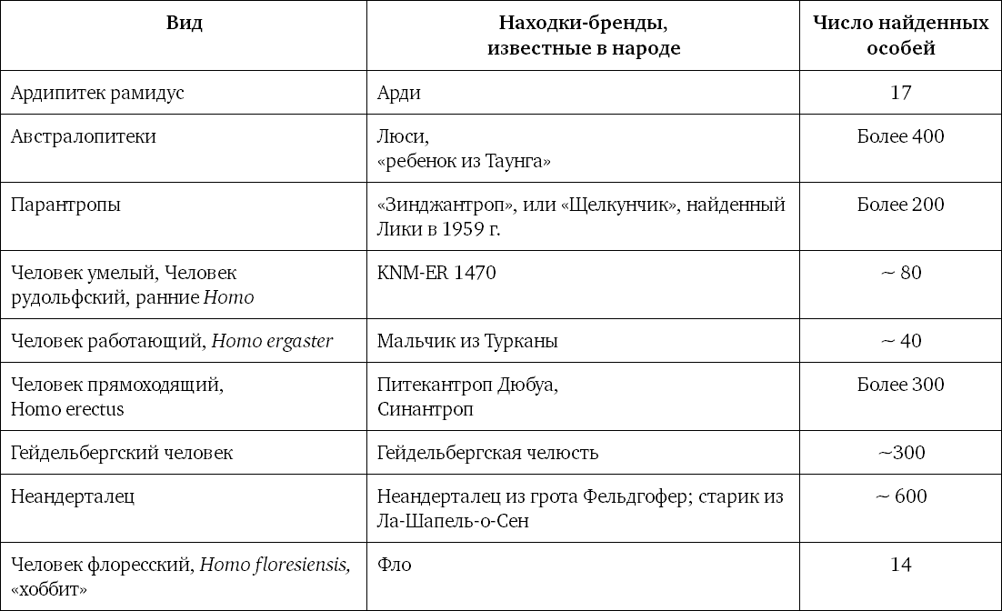 Любая популярная (в том числе советская) книжка о предках человека содержала рассказ про поездку Эжена Дюбуа на Яву или про находку Фульрота в долине Неандер. И это правильно! Надо будоражить молодые умы романтикой открытий – иначе откуда возьмутся новые ученые, готовые мириться с тяготами долгих экспедиций, способные месяцами сидеть в раскопе под дождем или палящим солнцем ради очередного «недостающего звена»?.. Но в качестве побочного эффекта трудов популяризаторов возникли своеобразные «палеоантропологические бренды». Их цветасто расписывали в телепередачах. О них же сухо сообщали учебники.