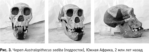 И еще. Лет 70 назад, когда подобных находок было не так много, ситуация казалась относительно простой. Жил-был австралопитек, потом от него произошел питекантроп, потом неандерталец и т. д. Когда находки стали накапливаться, выяснилось, что прямоходящих человекообразных существ на нашей планете когда-то жило множество. Например, 2–4 млн лет назад по Африке разгуливало сразу несколько видов австралопитеков. И можно быть уверенным, что в ближайшее время будут описаны новые виды, сейчас неизвестные! Очевидно, что кто-то из австралопитеков дал начало человеческому роду. Но также бесспорно, что все они одновременно быть нашими предками не могли… Кто же конкретно из австралопитеков – наш пращур? А может, предков было несколько? Ведь многие виды приматов могут скрещиваться, образуя гибриды.