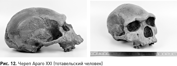 Таков, например, упомянутый тотавельский человек, найденный во французской пещере Араго. Он описан как подвид Homo erectus tautavelensis; первооткрыватели отмечали сходство тотавельцев как с питекантропами Явы, так и с гейдельбергским человеком, и классифицировали людей из Араго как «пренеандертальцев». Логично: ведь самого гейдельбергского человека можно рассматривать как прогрессивного эректуса, можно как раннего неандертальца, а можно – как переходную форму между эректусами и неандертальцами. Диалектика эволюции, друзья!