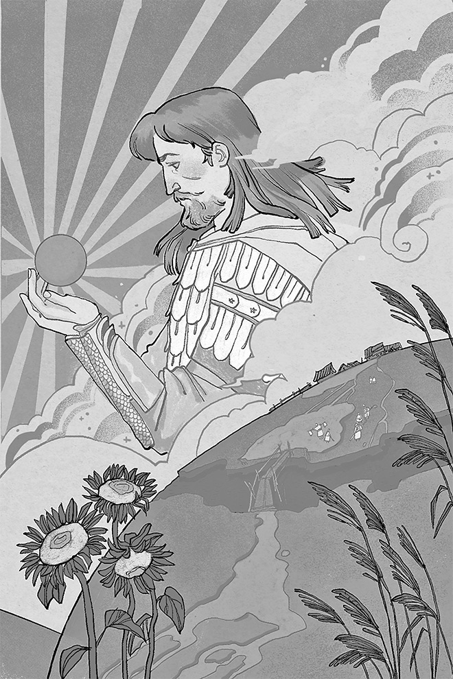 b) Низведение мифов на землю и прикрепление их к известной местности и историческим событиям. Те поэтические образы, в каких рисовала народная фантазия могучие стихии и их влияние на природу, почти исключительно были заимствуемы из того, что окружало человека, что по тому самому было для него и ближе и доступнее; из собственной житейской обстановки брал он свои наглядные уподобления и заставлял божественные существа творить то же на небе, что делал сам на земле. Но как скоро утрачено было настоящее значение метафорического языка, старинные мифы стали пониматься буквально, и боги мало-помалу унизились до человеческих нужд, забот и увлечений и с высоты воздушных пространств стали низводиться на землю, на это широкое поприще народных подвигов и занятий. Шумные битвы их во время грозы сменились участием в людских войнах; ковка молниеносных стрел, весенний выгон дождевых облаков, уподобляемых дойным коровам, борозды, проводимые в тучах громами и вихрями, и рассыпание плодоносного семени = дождя заставили видеть в них кузнецов, пастухов и пахарей; облачные сады и горы и дождевые потоки, вблизи которых обитали небесные боги и творили свои славные деяния, были приняты за обыкновенные земные леса, скалы и источники, и к этим последним прикрепляются народом его древние мифические сказания. Каждая отдельная часть племени привязывает мифы к своим ближайшим урочищам и чрез то налагает на них местный отпечаток. Низведенные на землю, поставленные в условия человеческого быта, воинственные боги утрачивают свою недоступность, нисходят на степень героев и смешиваются с давно усопшими историческими личностями. Миф и история сливаются в народном сознании; события, о которых повествует последняя, вставляются в рамки, созданные первым; поэтическое предание получает историческую окраску, и мифический узел затягивается еще крепче.
