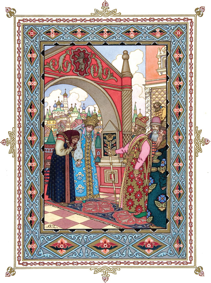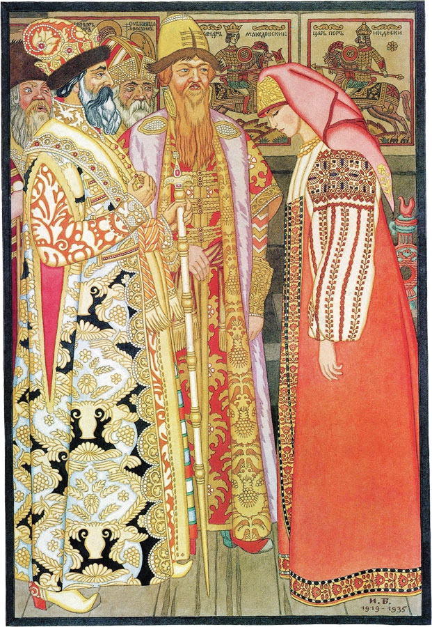 Пошла Василиса и явилась пред очи царские. Как увидел царь Василису Прекрасную, так и влюбился в неё без памяти.
