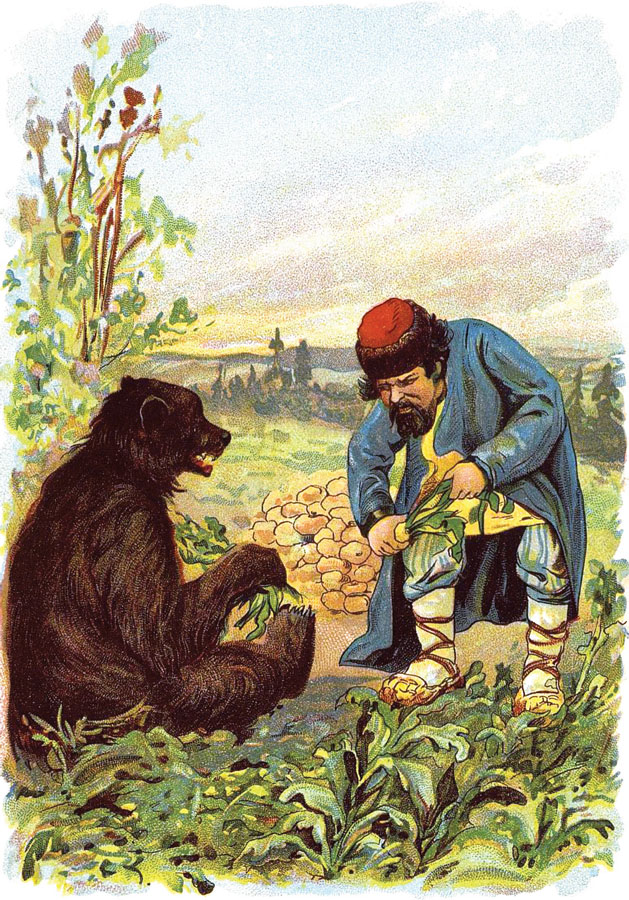 У мужика с медведем была большая дружба. Вот и вздумали они репу сеять; посеяли и начали уговариваться, кому что брать.