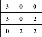 Δ = (3·0·2 + 0·2·0 + 3·2·0) – (0·0·0 + 3·0·2 + 3·2·2) = (0 + 0 + 0) – (0 + 0 + 12) = – 12 ≠ 0;