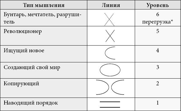 * – Тип «бунтарь, мечтатель, разрушитель» является самым высоким. Однако правильно считать его запредельным или перегруженным, так как он проявляет всю свою неистовую энергию только в особых условиях сильного противодействия, сопротивления тем идеям, которые несет в себе «бунтарь, мечтатель, разрушитель».