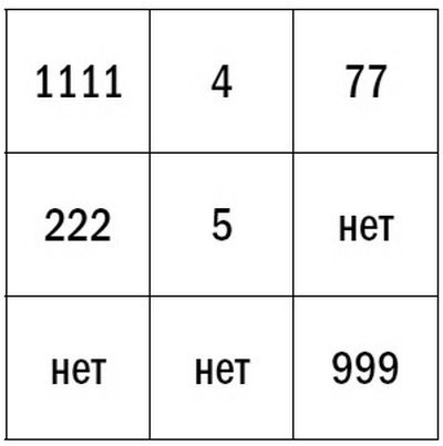 3-я строка – нет нет 999 – (цифры: 3, 6, 9).