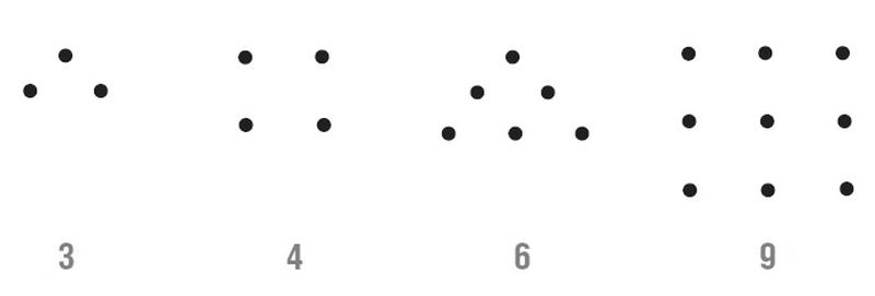 Красивый способ записывать числа. Особое место отводилось «квадратным» числам, именно такими числами были 4 и 9, которые можно изобразить в виде квадрата, считавшимся гармоничной фигурой, так как он имеет несколько осей симметрии.