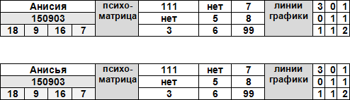 Она пророк, знающий будущее. В душе, она хотела бы воспользоваться своим даром, однако, разброс целей и заниженная самооценка, ограничивают её способности просмотра будущего её семьи, где самое главное – найти пути сохранения её стабильности. Как это ни удивительно, но семья и плоть проявляют себя всплесками, вдруг, иногда. Деньги и быт её угнетают, так как она выше этого. Обладая феноменальной памятью и максимальным талантом, она, весьма часто, не может найти себе применение, так как ей интересно практически всё. Исходя из этого, можно рекомендовать профессию библиотекаря или работника архива. Особенно подходит должность заведующей указанных учреждений. Её принципы незыблемы, так как они зафиксированы её сверх максимальной духовностью. Самое тяжёлое время – это детство и молодость, когда она вынуждена выслушивать многочисленные советы и требования воспитателей и учителей, которые могут отрицательно сказаться на её интересе к наукам и обучению вообще. Она требует уважения к себе, не ищет авторитетов и имеет на всё своё мнение. Выбирая мужа, главное, чтобы он принимал её духовный мир и помог освободить её от материальных проблем.