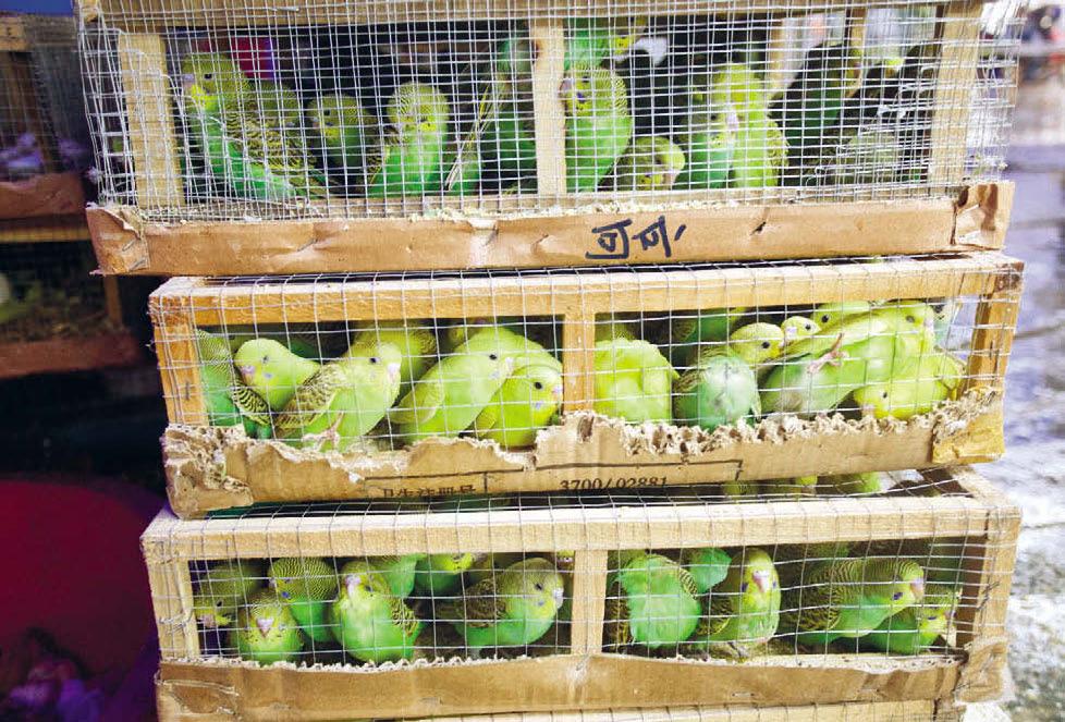 Рынок оформлен в традиционном китайском стиле. Он большой, здесь продают не только животных, но и поделки из камней, растения.