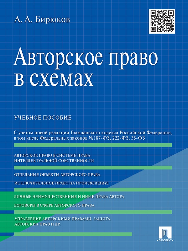 Предлагаемое пособие предназначено для изучения основных положений авторского права, которое традиционно осваивается студентами юридических вузов или в рамках курса «Гражданское право» или в рамках спецкурса «Право интеллектуальной собственности». Материал пособия разбит на семь отдельных тем, отражающих основное содержание авторского права, и излагается в виде схем. Каждая схема имеет свою нумерацию, соответствующую отдельной теме пособия.