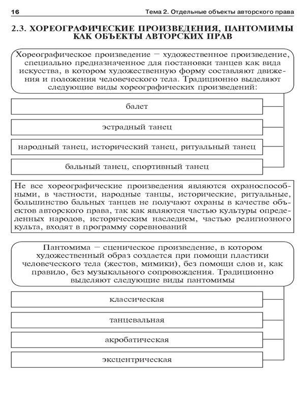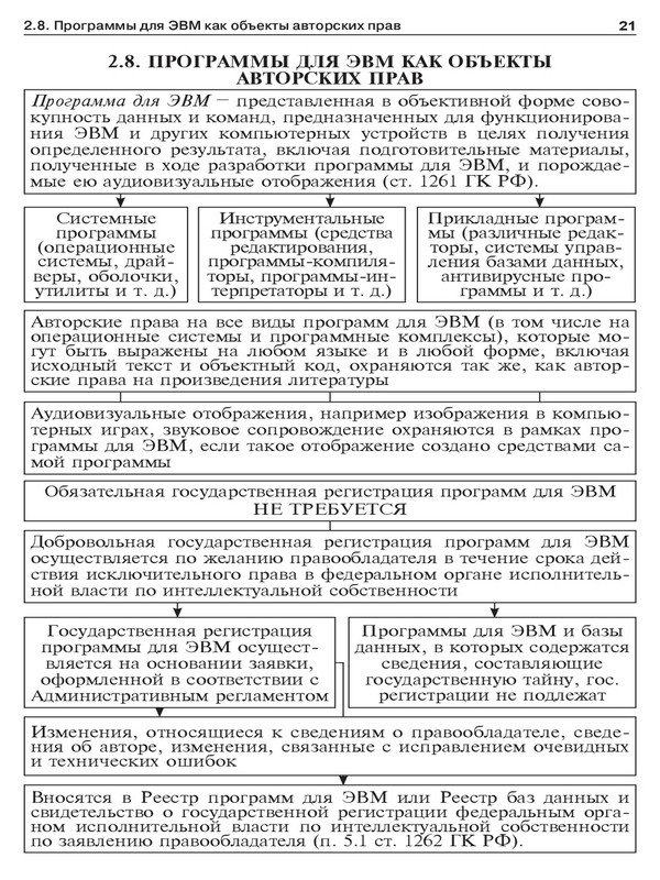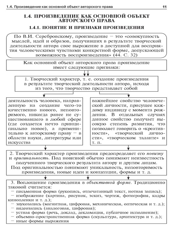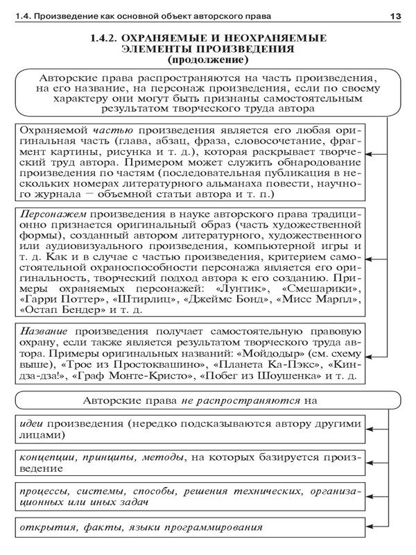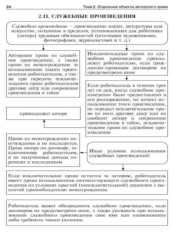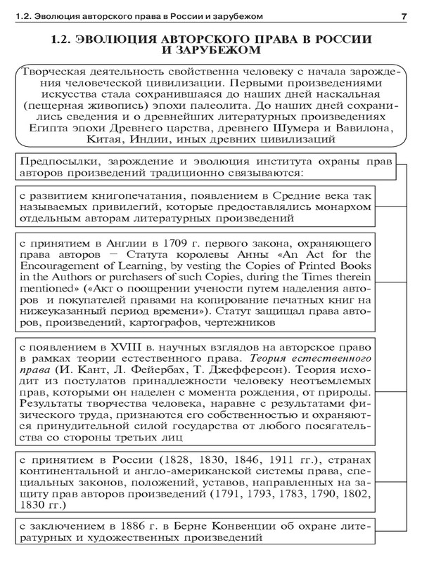 При подготовке пособия были использованы не только нормативные акты и материалы судебной практики, но и справочная литература по изобразительному искусству, литературе, кинематографии. Большинство схем помимо теоретических сведений снабжены примерами, позволяющими быстрее уяснить достаточно сложные конструкции авторского права.